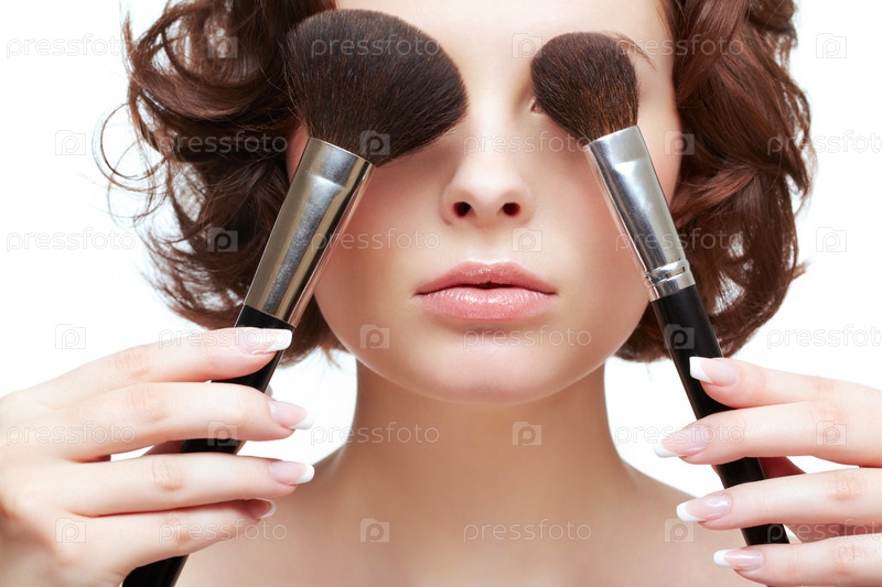 Женщина с кистями для макияжа