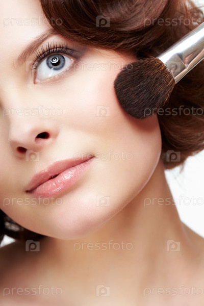 Женщина с кистью для макияжа