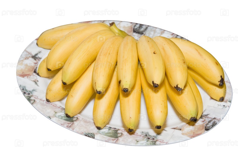 Гроздь бананов в тарелке на белом фоне