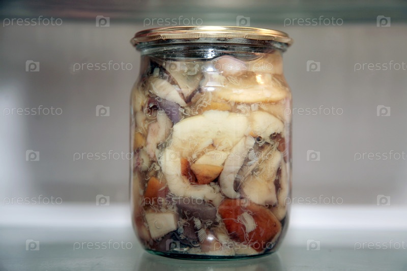 Банка маринованных грибов в холодильнике