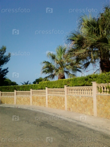 Каменный забор и живая ограда вдоль дороги, Cala Pi, остров Мальорка, Испания