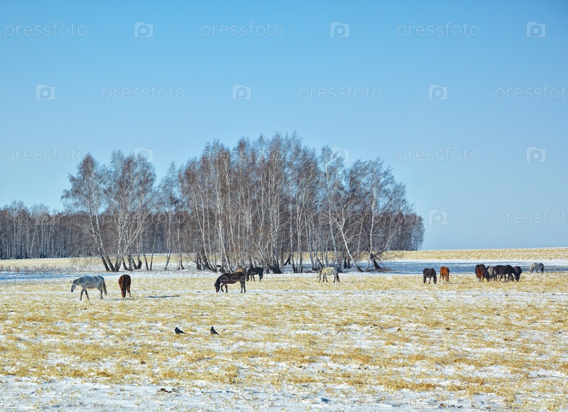 Лошади на снежном поле
