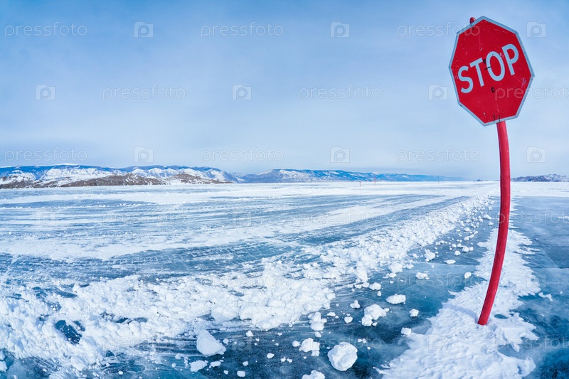 Дорожный знак остановки на Байкале