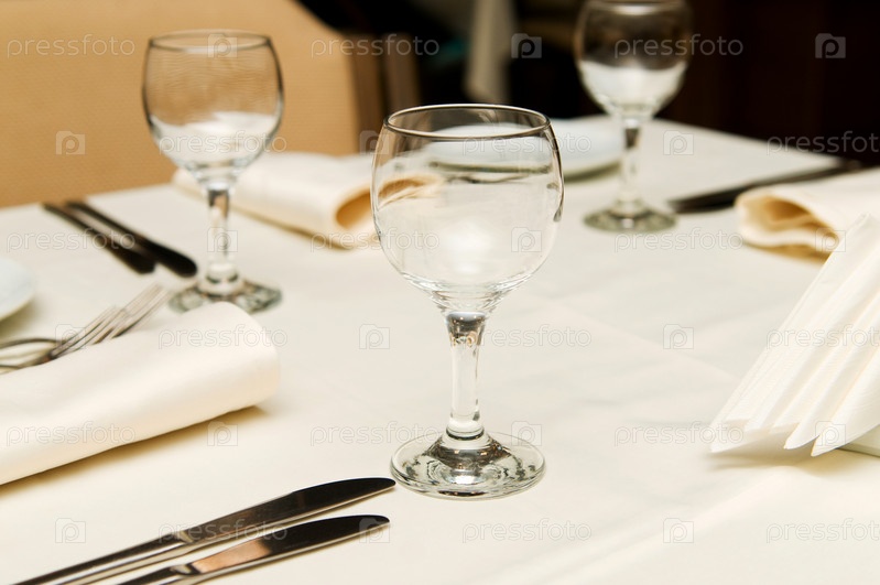 Сервированный стол с белой скатертью