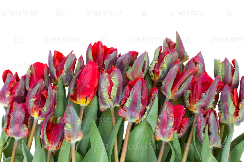Ряд красных тюльпанов-попугаев