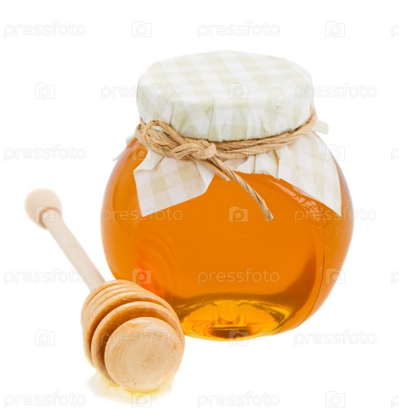 Мед в стеклянной банке и палочка