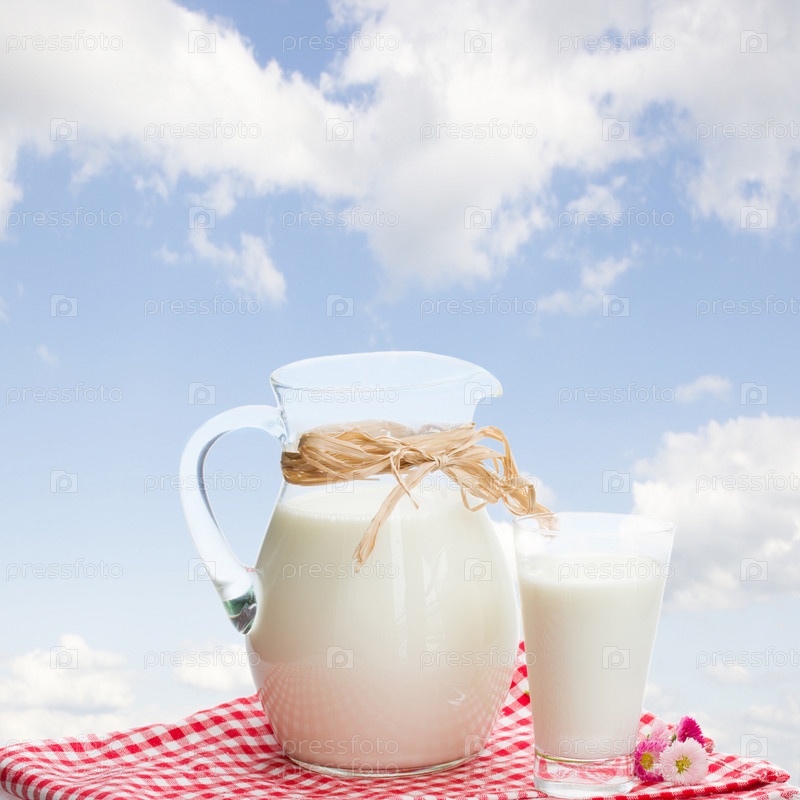 Кувшин молока и стакан на природе