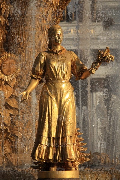 Статуя женщины с цветами в фонтане