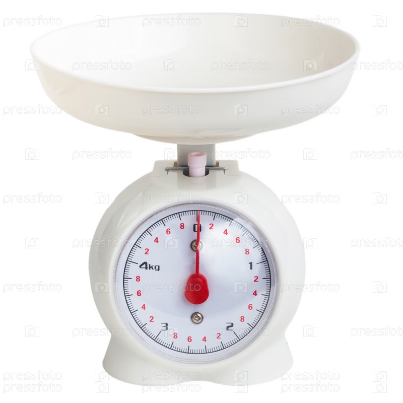 Пластиковые продуктовые весы, изолированные на белом фоне