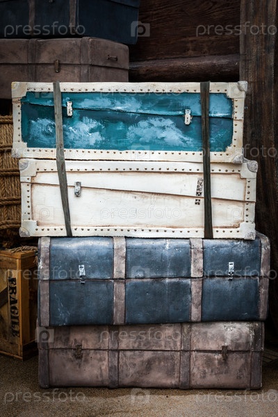 Старинный сундуки, ящики, чемоданы