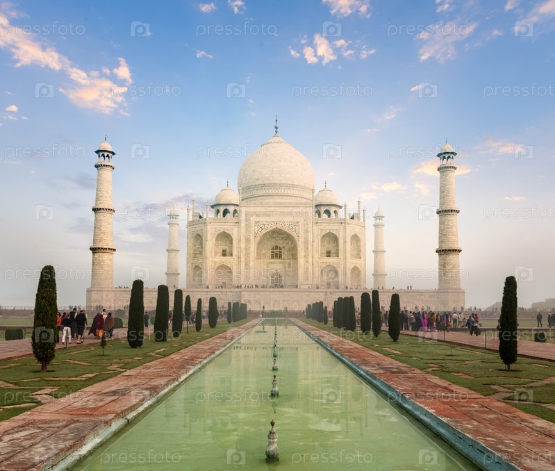 Тадж Махал, символ Индии, на восходе или на закате. Агра, Уттар Прадеш, Индия