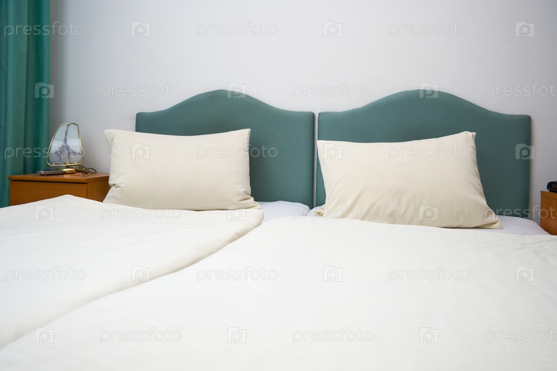 Двуспальная кровать в номере гостиницы