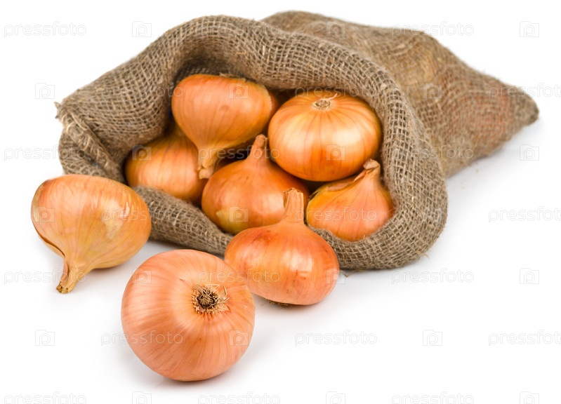 Лук в холщовом мешке