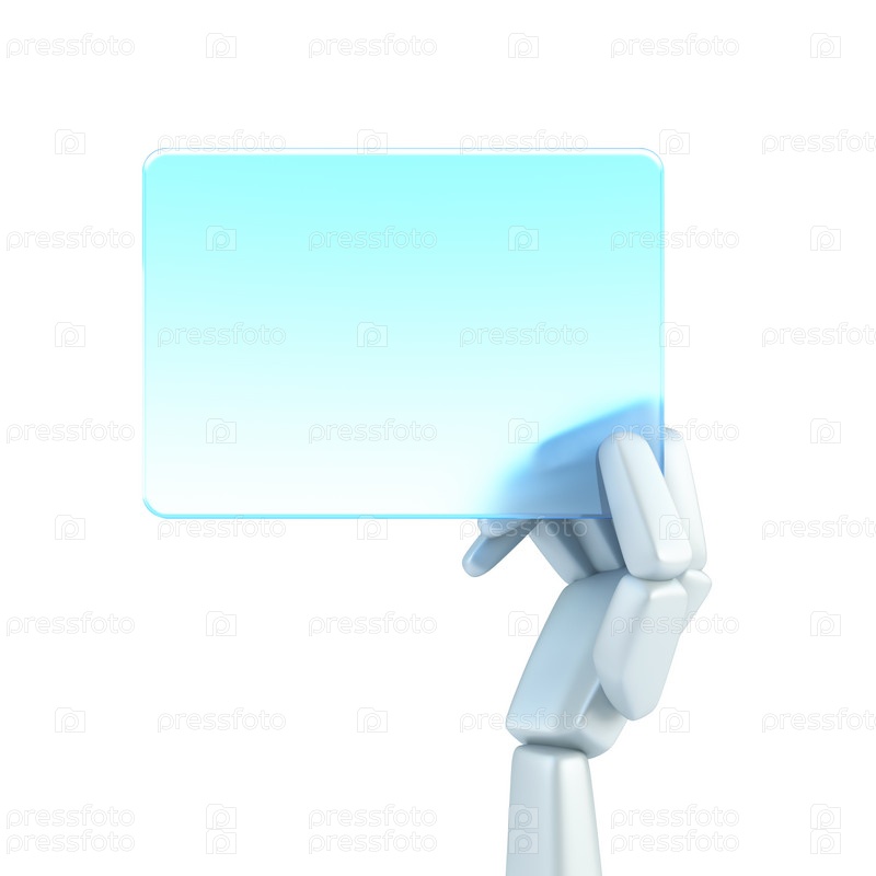 Робот держит пустую визитную карточку