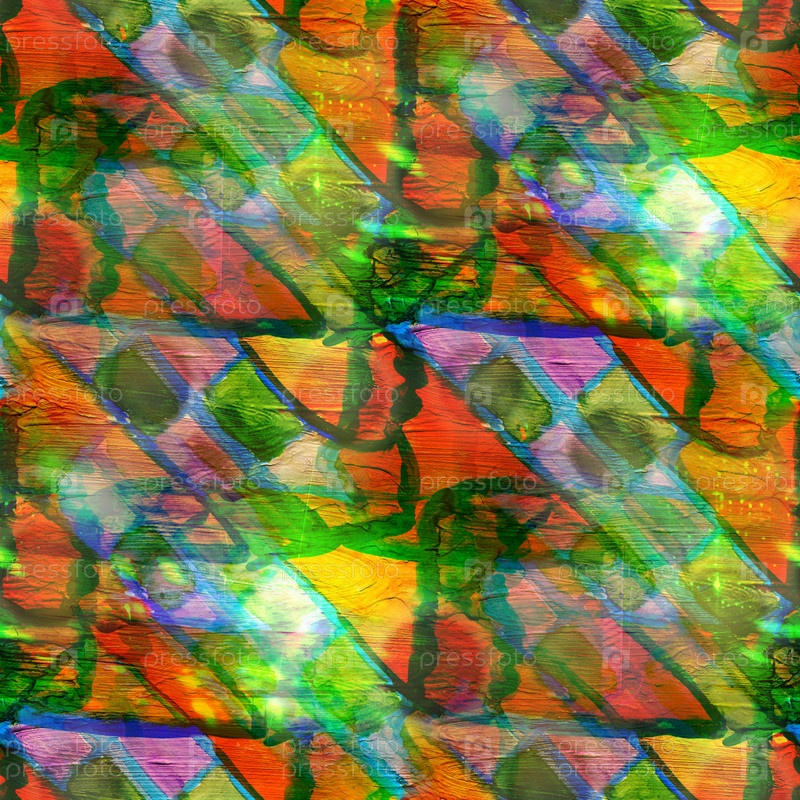 Зеленый, оранжевый акварельный бесшовный абстрактный фон