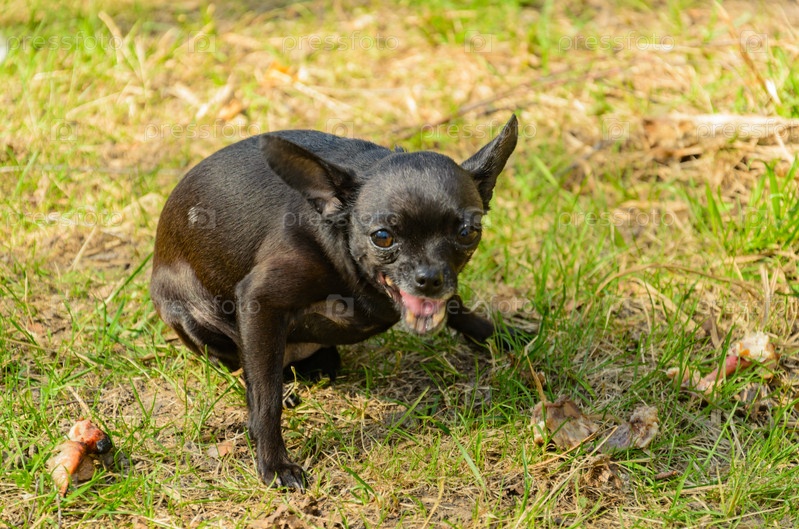 Небольшая злая черная собака