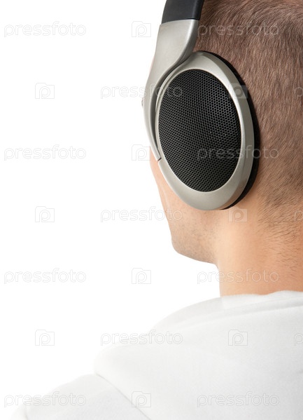 Молодой человек слушает музыку. Вид сзади