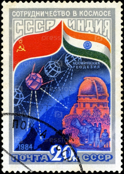 Марка СССР 1984 года. Интеркосмос, совместная космическая программа СССР и Индии