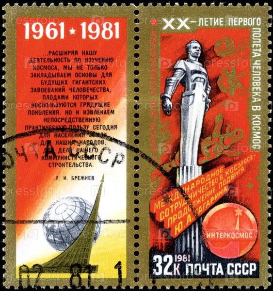 Российская марка 1981 года. Памятник Юрию Гагарину