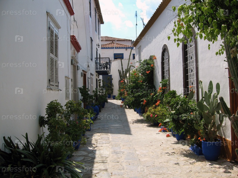 Синие двери и цветы, остров Гидра