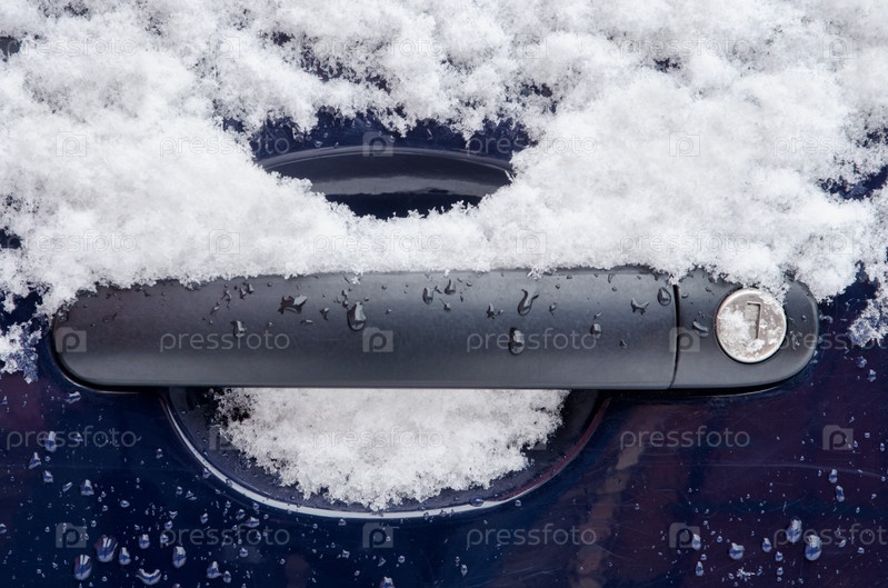 Автомобильная ручка, покрытая снегом