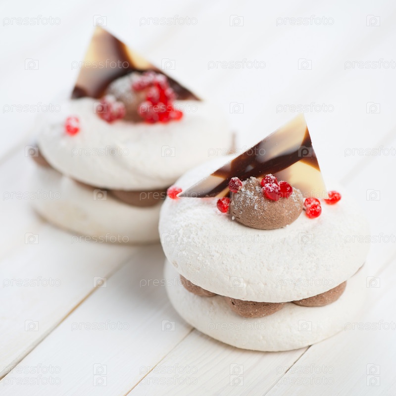 Два бисквитных пирожных на деревянных досках