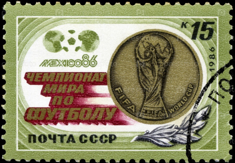 Почтовая марка СССР 1986 года, футбол, Мексика, Кубок мира
