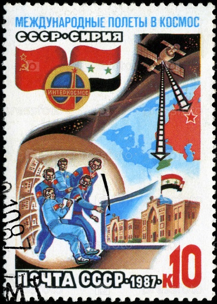 Почтовая марка СССР 1987 года, международные советско-сирийские космические полеты