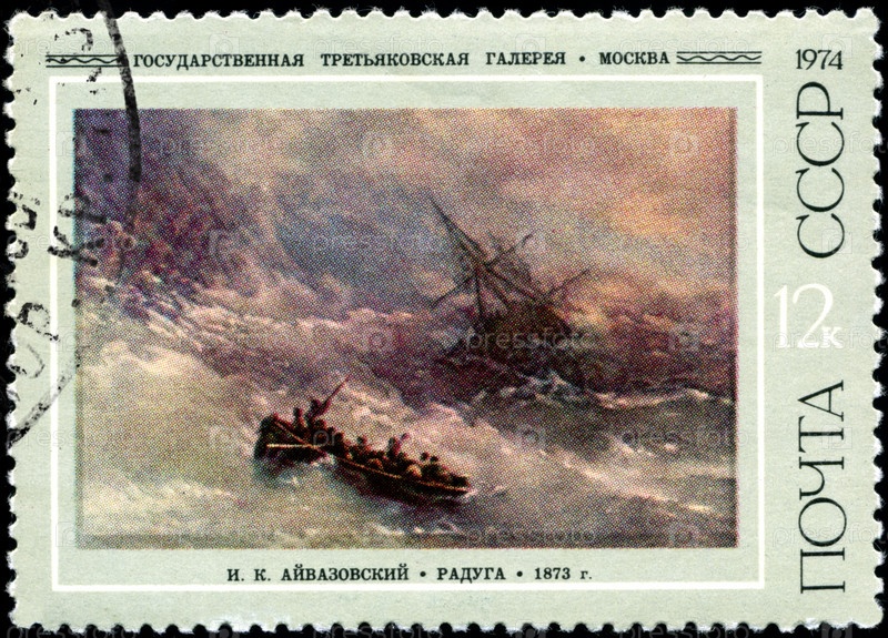 Почтовая марка СССР 1974 года, картина «Радуга» 1873 года художника мариниста Айвазовского