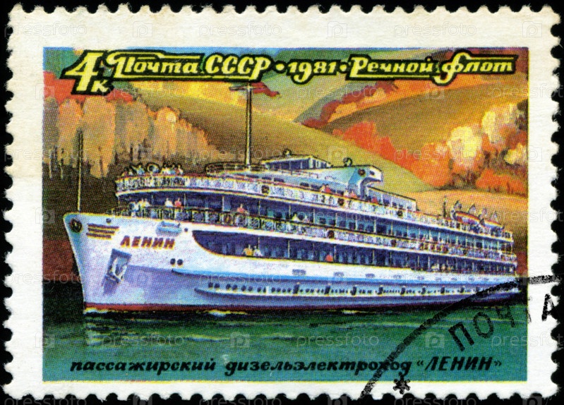 Почтовая марка СССР 1981 года, корабль с надписью "Ленин" из серии «Российский речной флот»