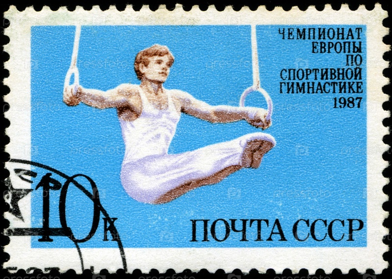 Почтовая марка СССР 1987 года, гимнастка, чемпионат Европы, Москва