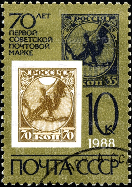 Почтовая марка СССР 1988 года, 70-летие первой почтовой марки