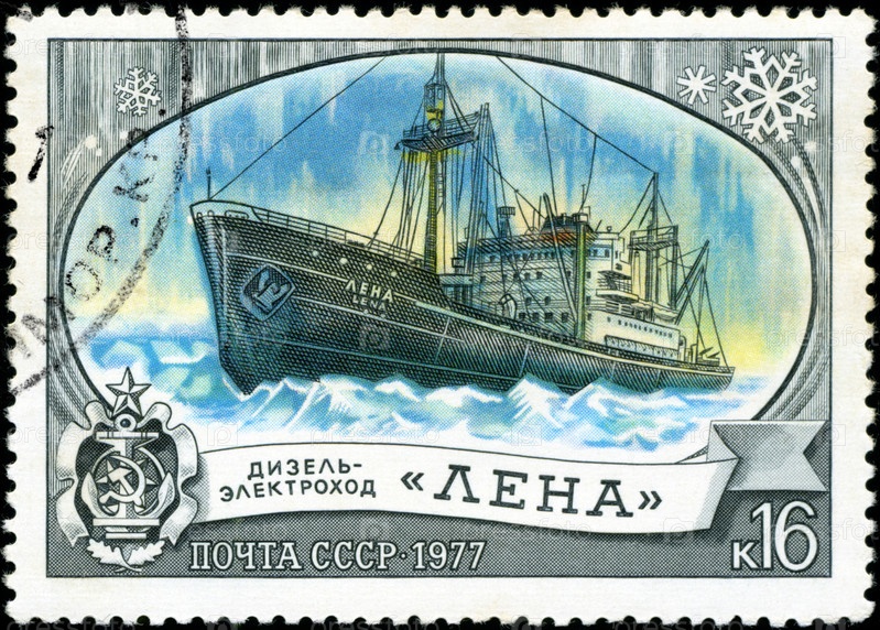 Почтовая марка СССР 1977 года, дизелный пароход «Лена»