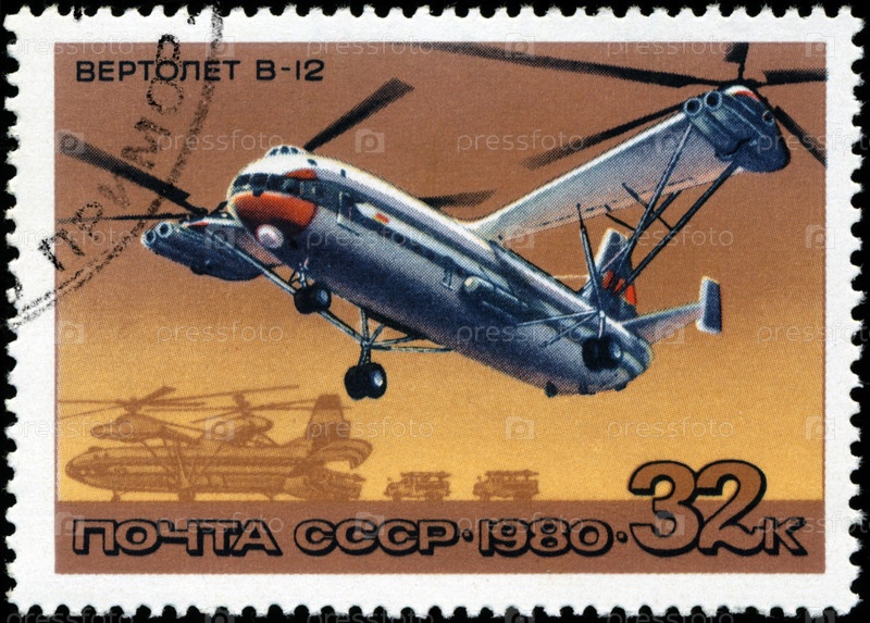 Почтовая марка СССР 1980 года, вертолет V-12