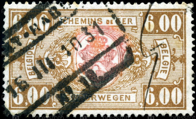 Почтовая марка Бельгии 1927 года, герб. Железнодорожная почтовая марка