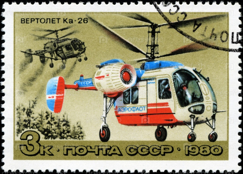 Почтовая марка СССР 1980 года, вертолет «Ка-26»