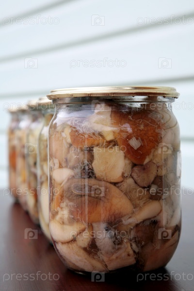 Банки домашних консервированных грибов