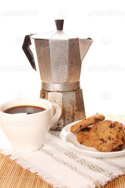 Шоколадное печенье и чашка кофе
