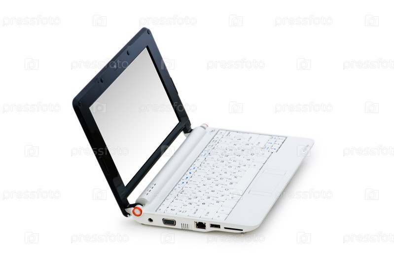 Небольшой черно-белый ноутбук, изолированный на белом фоне