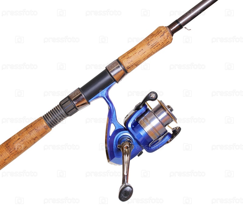 Удочка с катушкой, изолированные на белом фоне