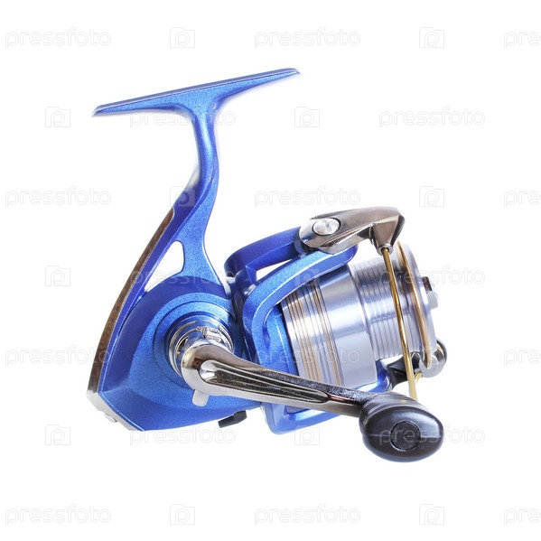Катушка спиннинга, изолированная на белом фоне