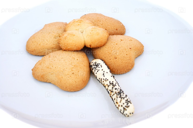 Печенье на тарелке на белом фоне