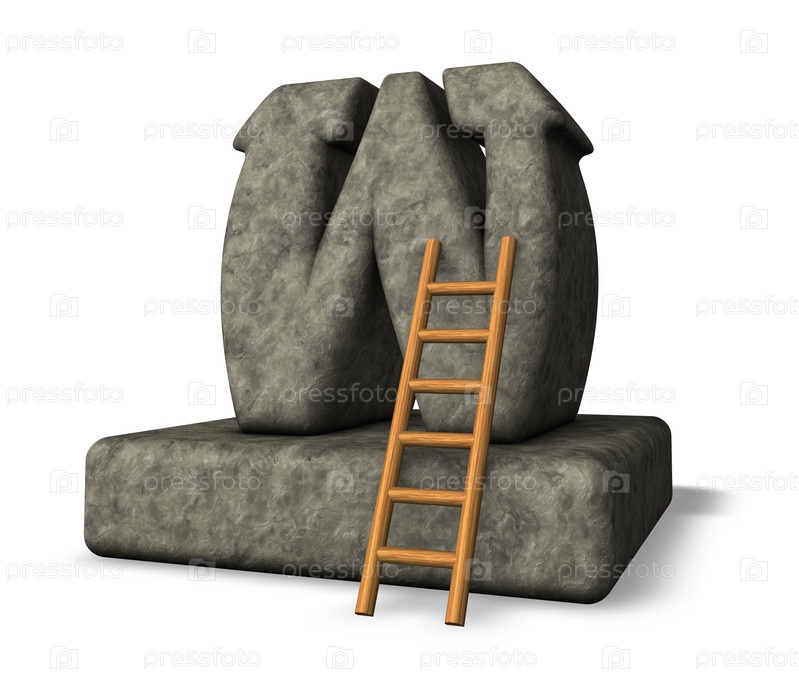 Каменная буква w и лестница - 3d иллюстрация