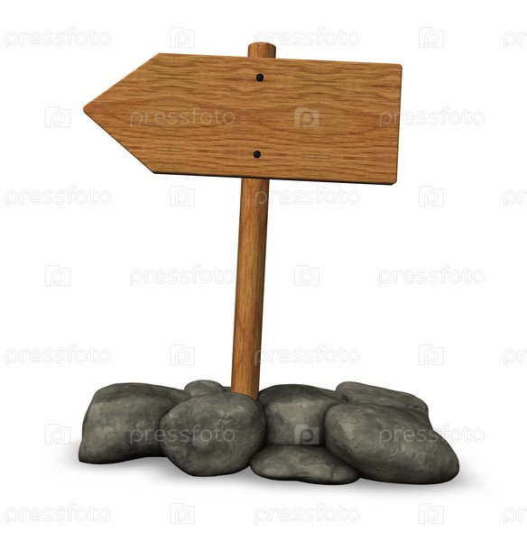Деревянный знак и камни на белом фоне - 3d иллюстрация