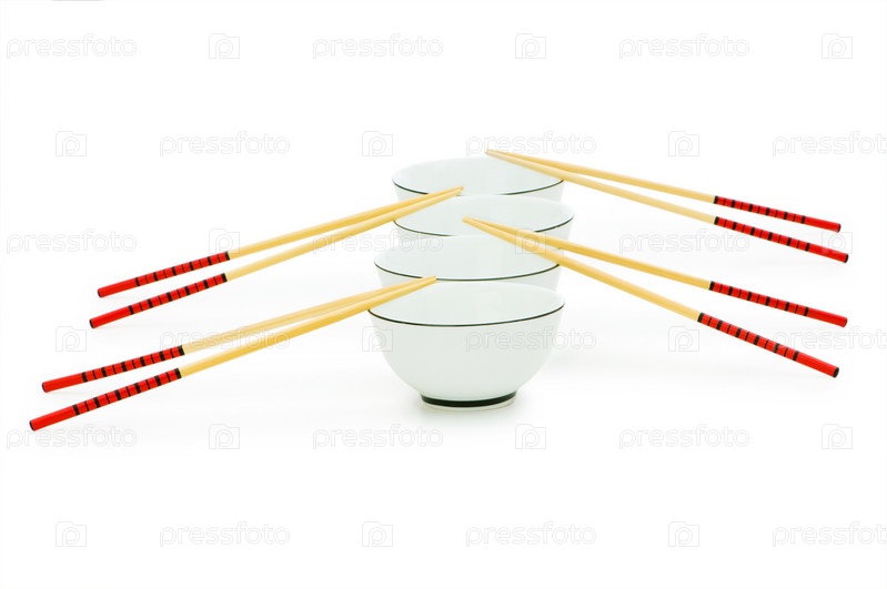 Чаша и палочки изолированы на белом