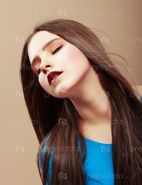 Мечтательность. Портрет чувственной брюнетки с прямыми коричневыми волосами