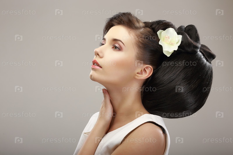 Стильная харизматичная женщина с модной роскошной прической. Шарм