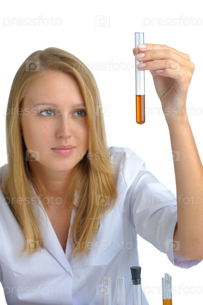 Молодая женщина-ученый с пробирками