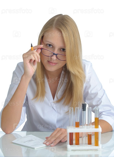 Молодая женщина-ученый с пробирками
