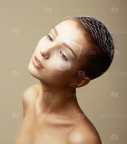 Девушка с фейс-артом. Модель с творческим бронзовым макияжем